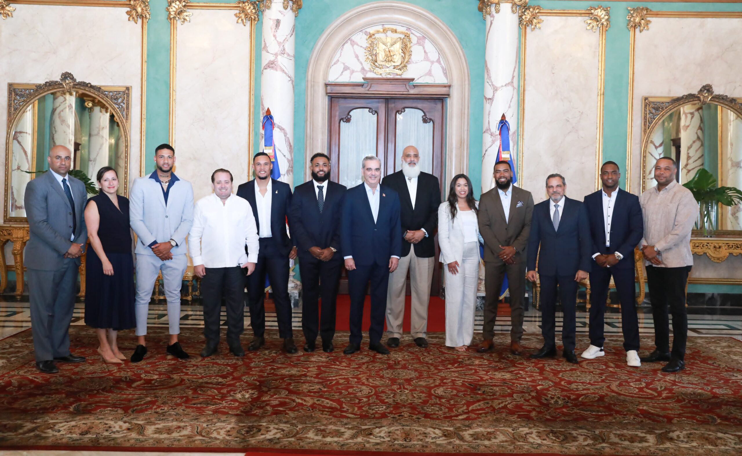 Santo Domingo. – El presidente Luis Abinader recibió en el Palacio Nacional a miembros y directivos de la Asociación de Peloteros de Grandes Ligas (MLBPA), con quienes sostuvo un encuentro en el salón de reuniones.